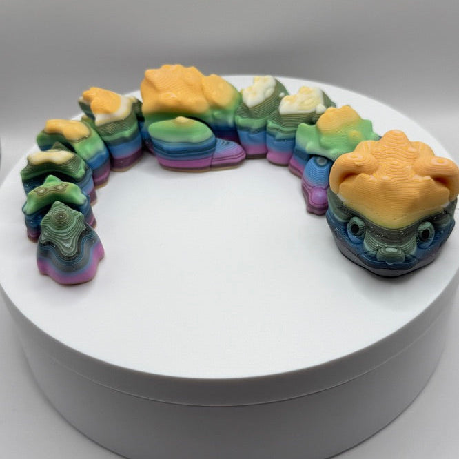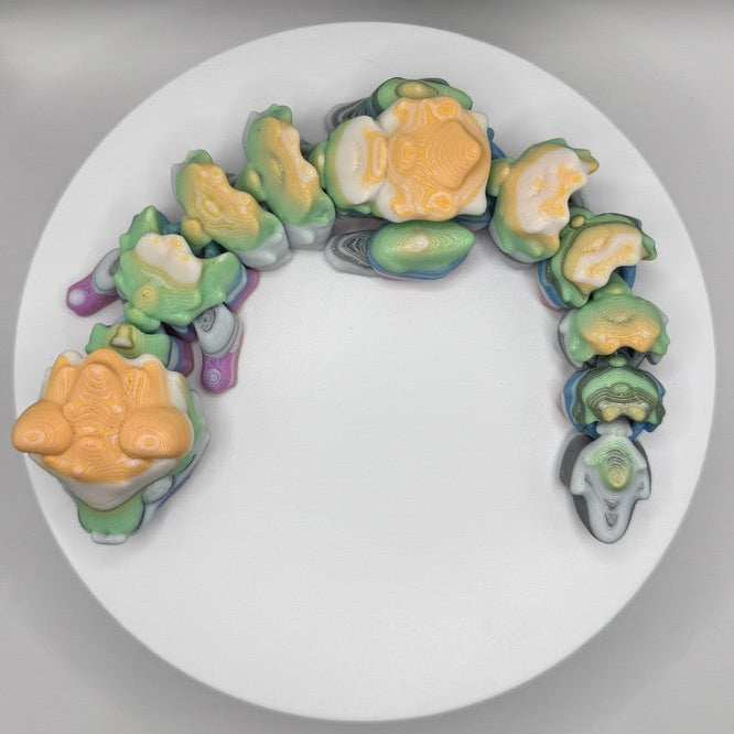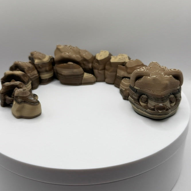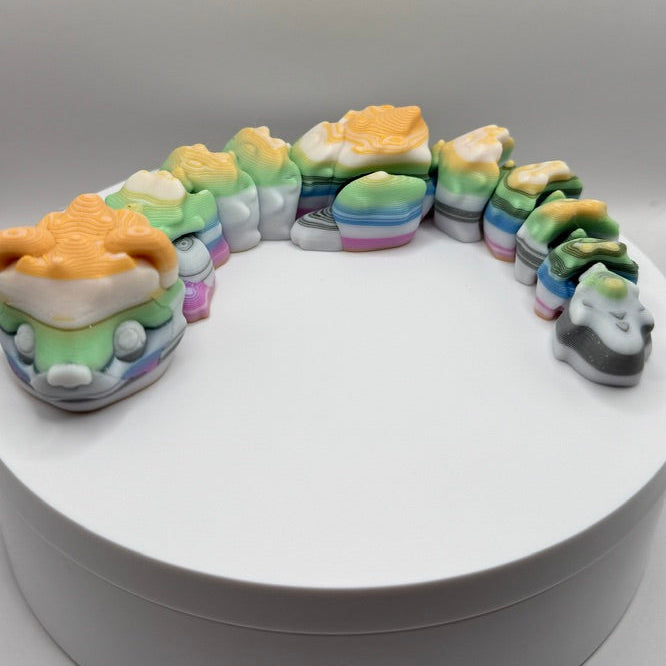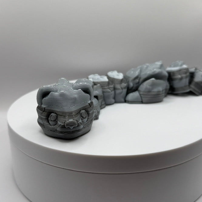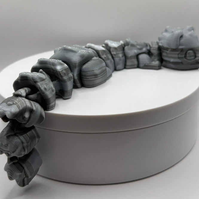 Meet your new favorite desk buddy: the Flexi Ferret! This fully articulated 3D-printed ferret is designed with smooth, layered detail and a satisfyingly bendy body that wiggles, curls, and poses just like a real mischievous noodle. From its rounded snout and expressive little face to the long, segmented body that stretches across your hand, this flexi brings big charm and endless fidget fun. Each colorway highlights the natural swirl patterns of the filament, giving every ferret a unique, stone-carved look — available in marbled neutrals, dreamy rainbow layers, and soft pastel blends. Whether you love ferrets, adore flexi creatures, or just want a fun, wiggly companion for your shelf or workspace, this Flexi Ferret is the perfect addition to your collection.